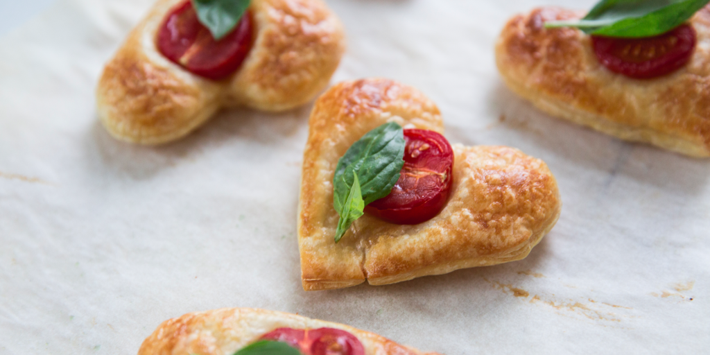 De tomaatjes die niet in de oven zijn gegaan kunnen met een satéprikker supersimpel omgetovert worden tot hartjes.