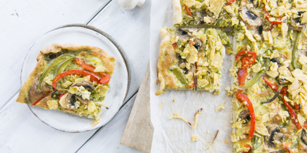 Verhit de helft van de olie in een koekenpan en bak hierin de reepjes bacon goudbruin. Voeg de sjalotjes toe en fruit deze 5 minuten op zacht vuur. Voeg de stukjes champignon, zongedroogde tomaat, wijn en Balsamico azijn toe en bak deze 3-4 minuten tot het vocht is verdampt. Breng de vulling op smaak met zout en peper.