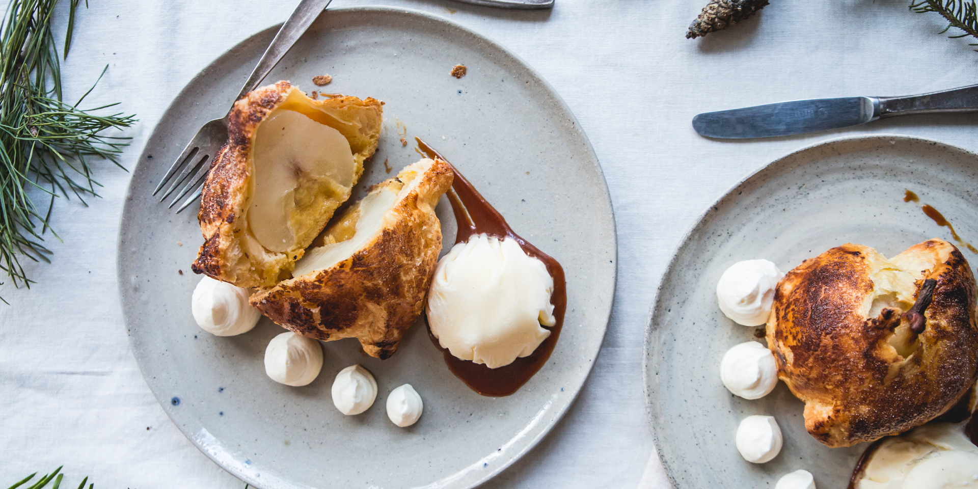 Soms moet je jezelf gewoon een beetje verwennen! Deze winterse peertjes in een bladerdeegjasje mét Italiaanse ijsmousse kan niemand weerstaan.