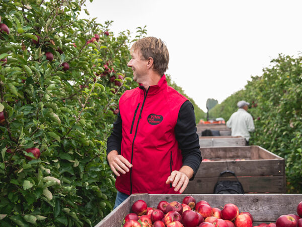 Mijn vader is vroeger vanuit de betuwe naar de polder verhuisd vanwege de goede grond en het goede gebied voor fruitteelt. Op 21 hectare grond telen we onder andere Jonagold, Elstar, Red Prince, Conference en Gieser Wildeman. Normaal gesproken hebben we 5 mensen in dienst, maar in het plukseizoen loopt het op naar 30 medewerkers.